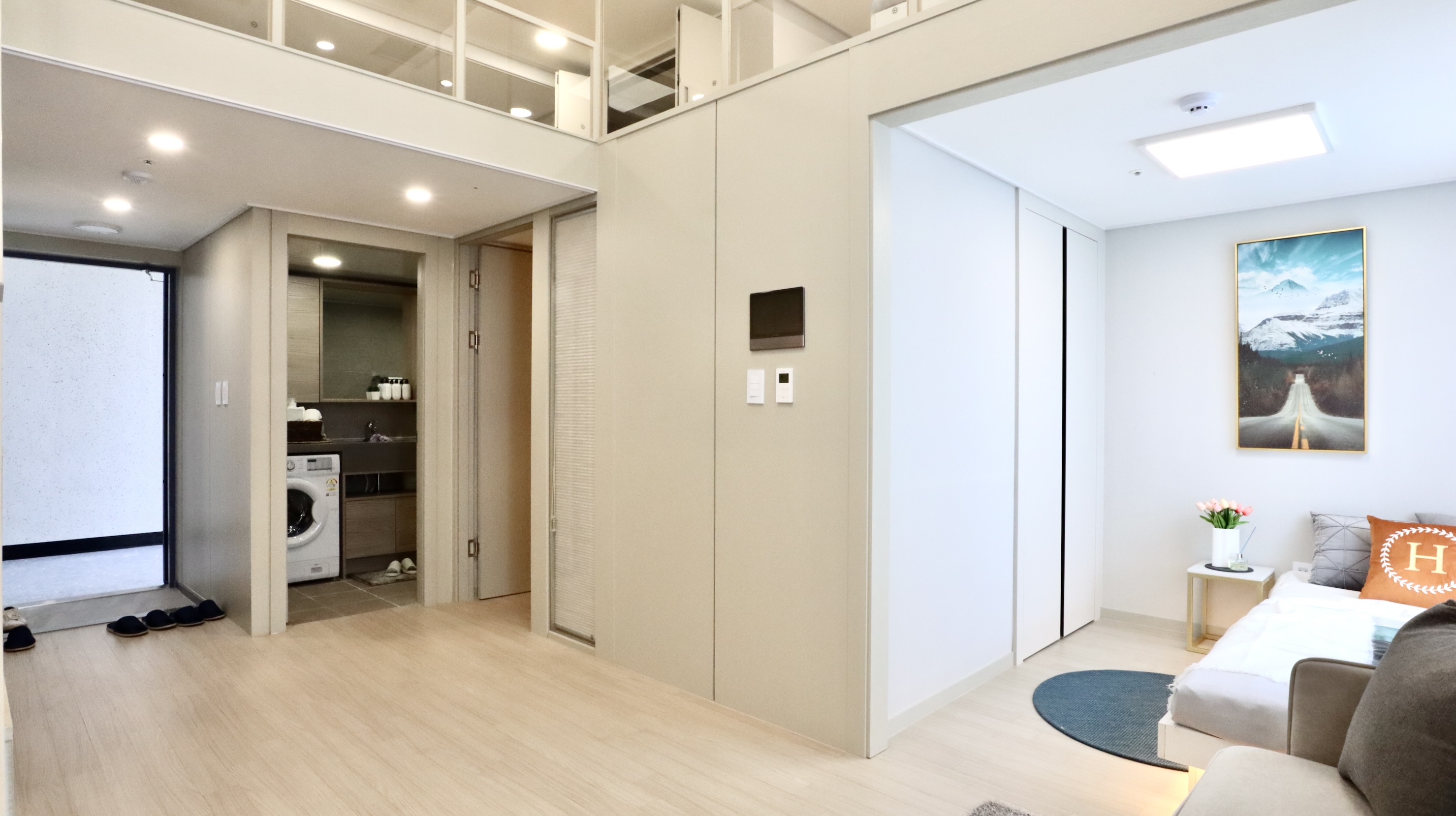 2인~3인 거주하기 좋은 규모다. 복층에도 공간이 있기 때문에 공간활용도가 좋은 편이다. 물론 복층에서의 낮은 층고는 오피스텔의 한계일 수 밖에 없다. 그러나 미혼인 사람이나 결혼은 했지만 자녀가 아직 없는 신혼부부는 월세로 거주하다가 내집마련을 하는 것도 하나의 방법이다. 또한 회사에서 직원들 기숙사로 이용하기에도 좋다.
